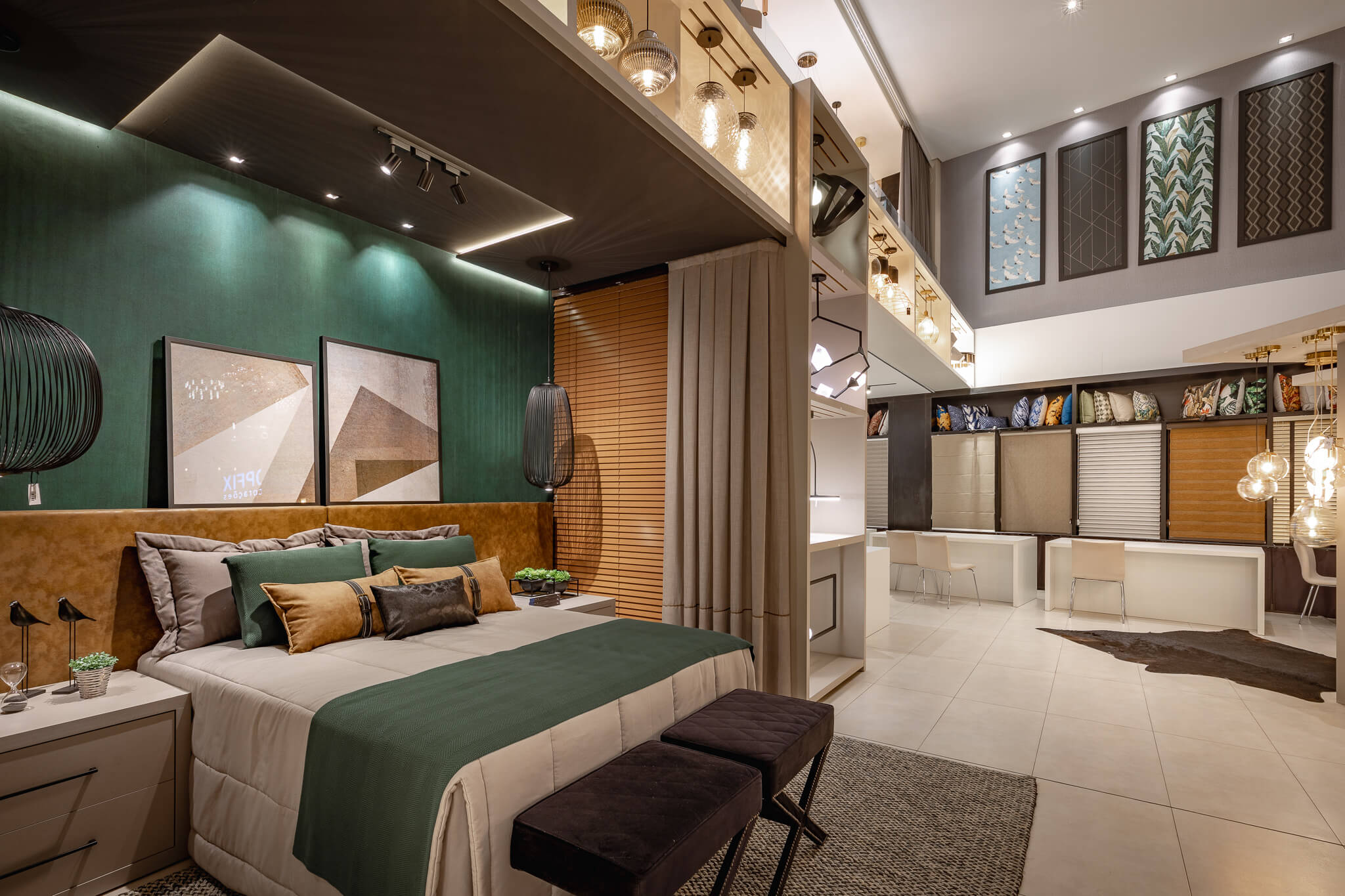 Modelos de cortinas e persianas automatizadas estão disponíveis para manuseio dos clientes, bem como os mais de 300 modelos de tapetes de produção nacional e importados, feitos sob medida ou a pronta entrega.