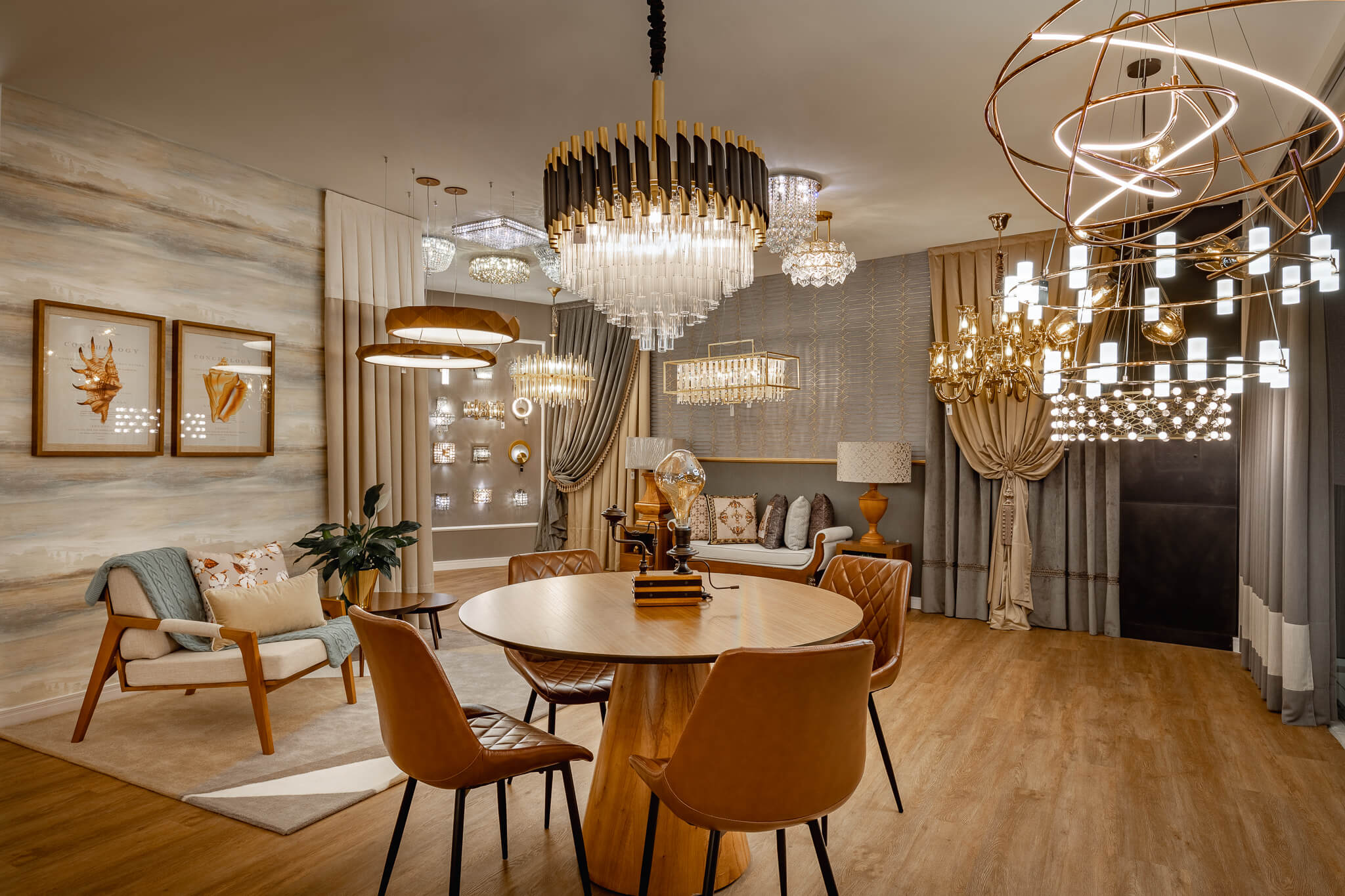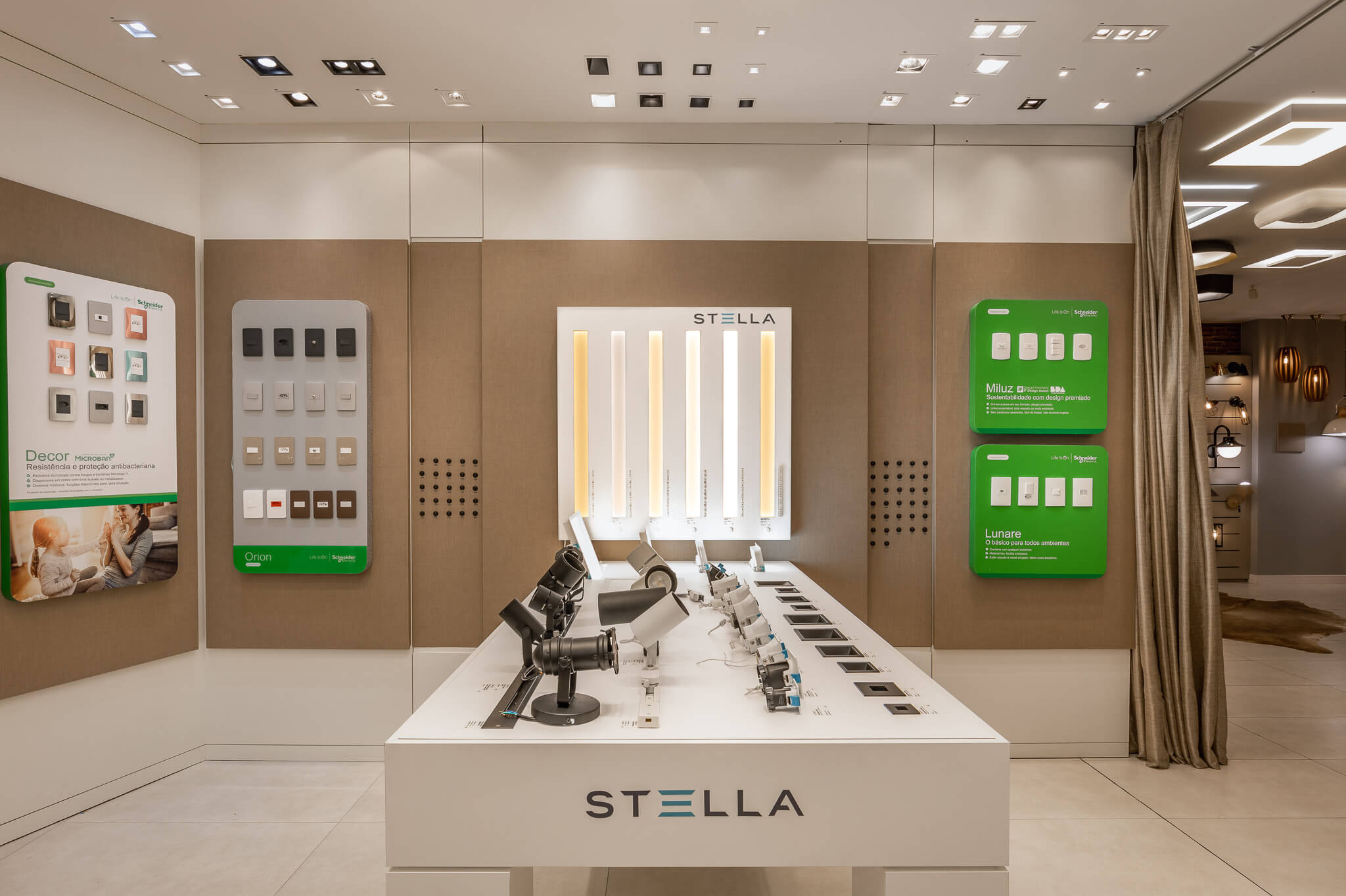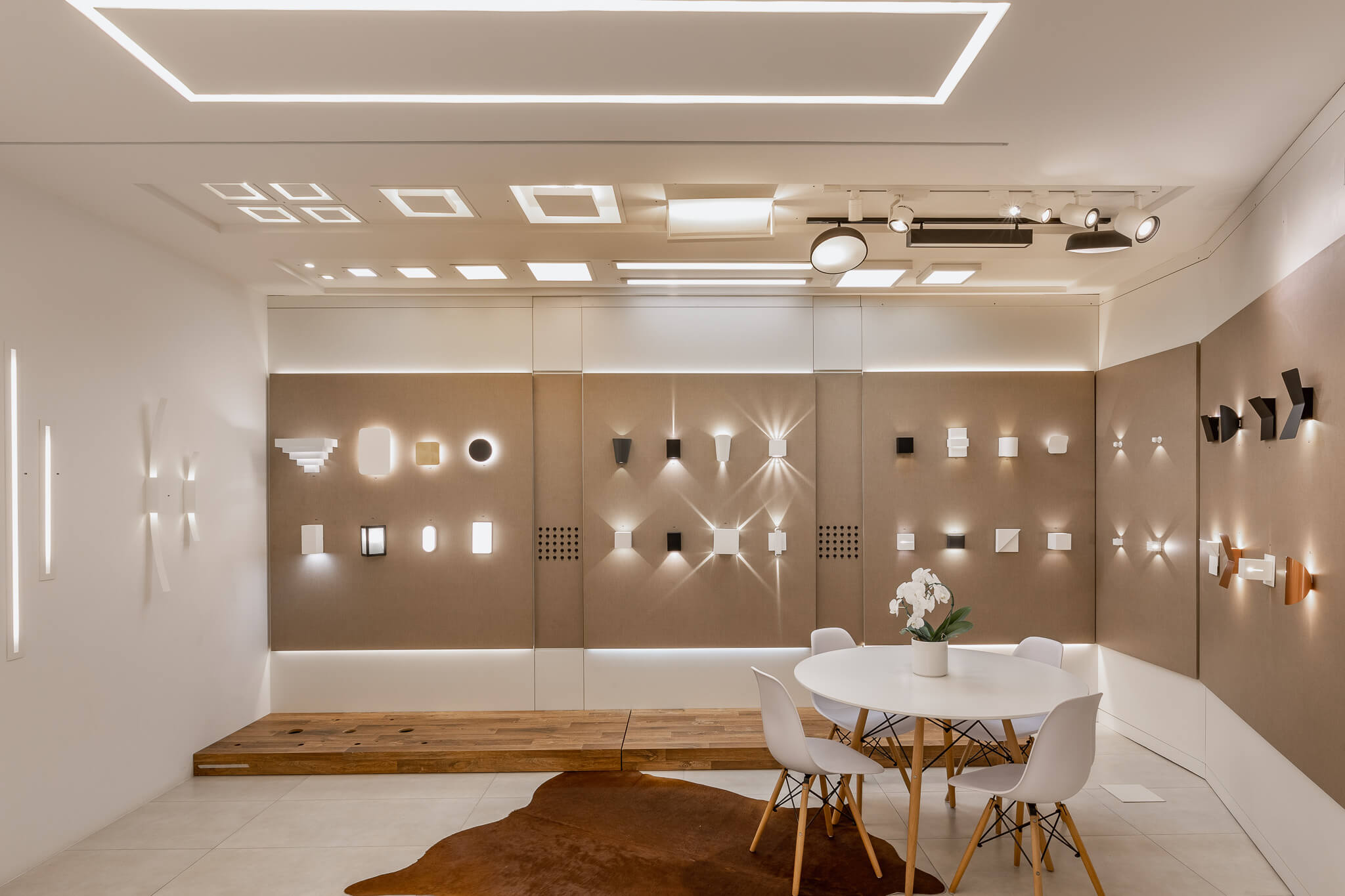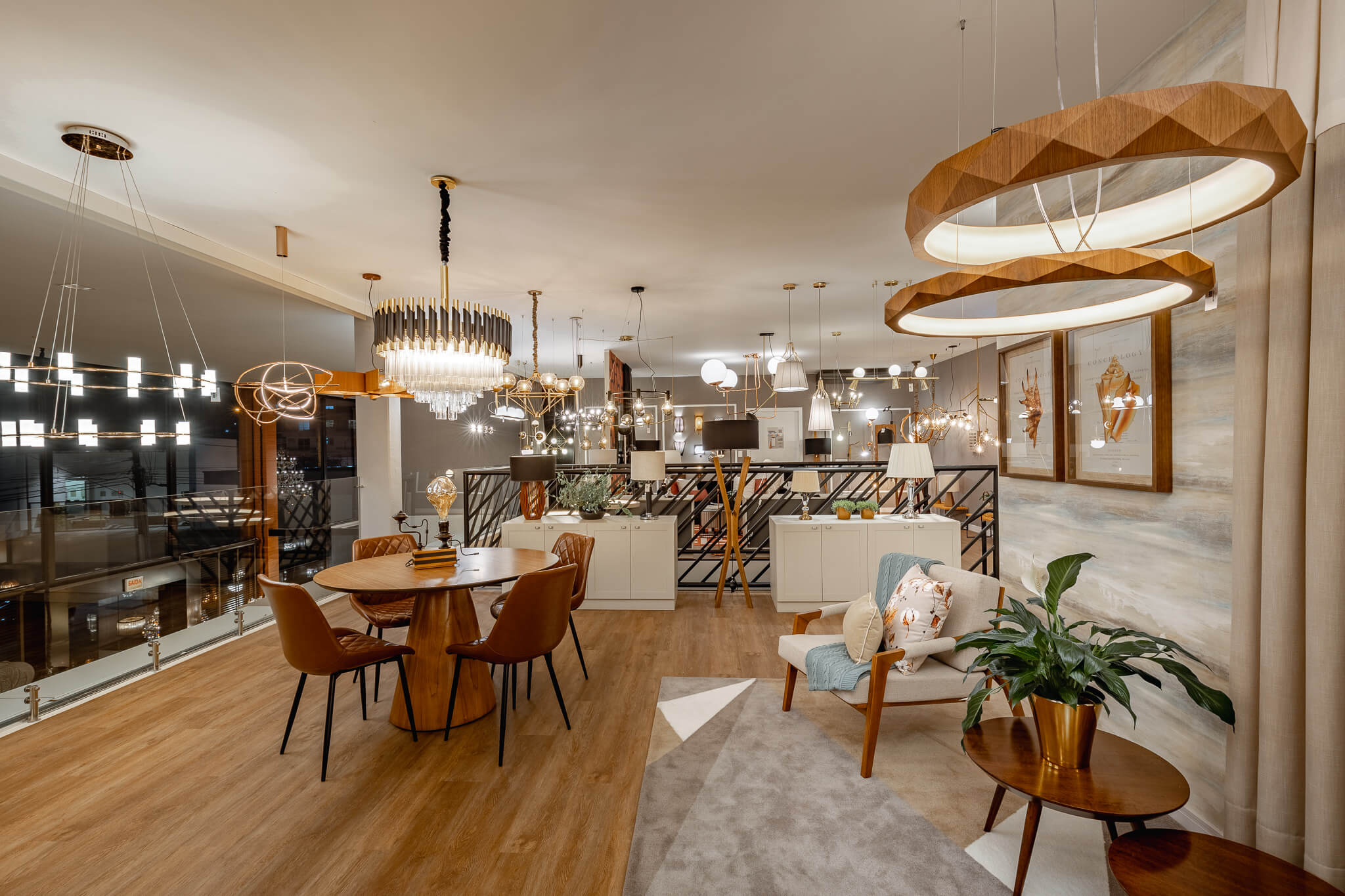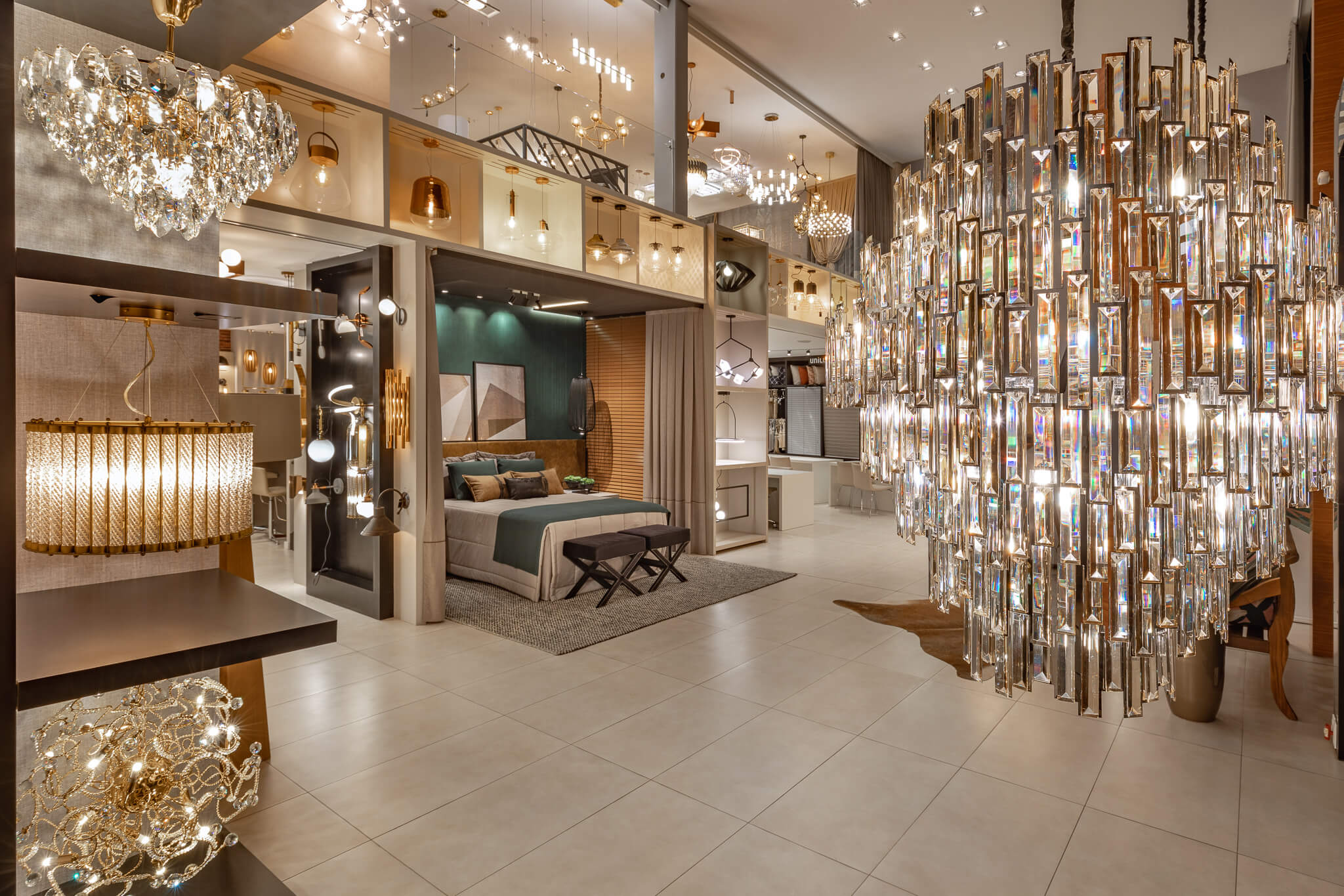 Contamos com um Showroom amplo e moderno com aproximadamente 500m2, onde dispomos de um laboratório técnico pensado para facilitar a escolha assertiva do modelo ideal de lâmpadas e embutidos para iluminação funcional, além de mais de 600 modelos de luminárias decorativas ambientadas e distribuídas nos dois pavimentos da loja.